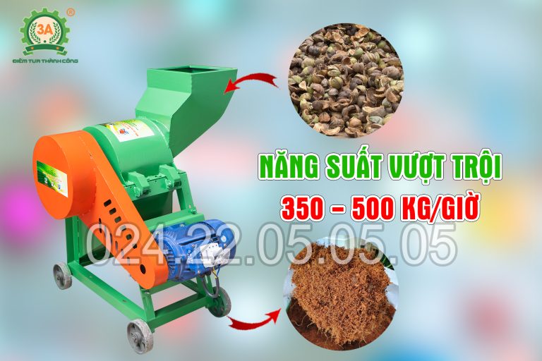 Máy xay xơ dừa: Đây là dòng máy phổ biến nhất, nhận nguyên liệu đã được băm nhỏ và xay, xé tơi thành hỗn hợp gồm mụn dừa và xơ dừa riêng biệt. Thành phẩm này rất đa dụng, có thể dùng trực tiếp hoặc đưa vào chế biến sâu hơn.