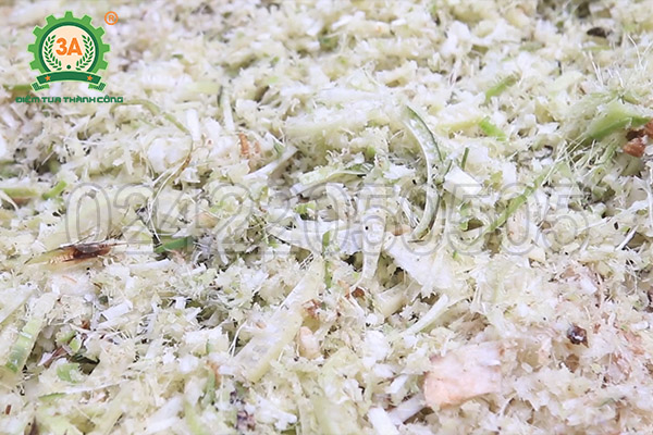 • Cách làm: Ví dụ, để chuẩn bị 10kg thức ăn, thay vì dùng 10kg cám như trước đây, bà con chỉ cần dùng 7kg cám, trộn đều với 3kg chuối đã được băm bằng máy 3A. Có thể bổ sung thêm một ít bột cá hoặc khô dầu đậu tương để tăng hàm lượng đạm.