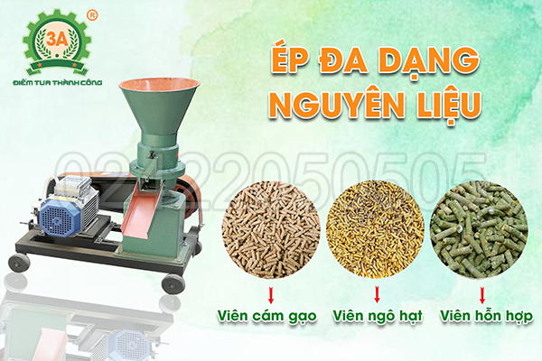 Máy ép cám viên 1 pha 3A3Kw sử dụng đa dạng các loại nguyên liệu để ép thành những viên cám dinh dưỡng cho đàn vật nuôi một cách nhanh chóng.