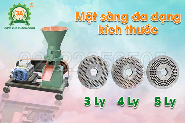 Lưu ý: Mỗi máy chỉ được lắp đặt sẵn một mặt sàng 4ly. Bà con có thể đặt mua thêm các sàng 3 ly, 5 ly để phục vụ đa dạng mục đích chăn nuôi.