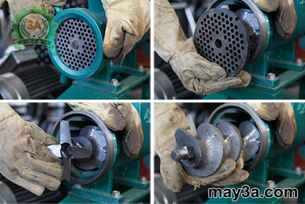 – Bước 3: Tiếp đó, tháo phễu nạp, dùng khăn và nước sạch để vệ sinh phễu nạp liệu và đầu nghiền của máy.