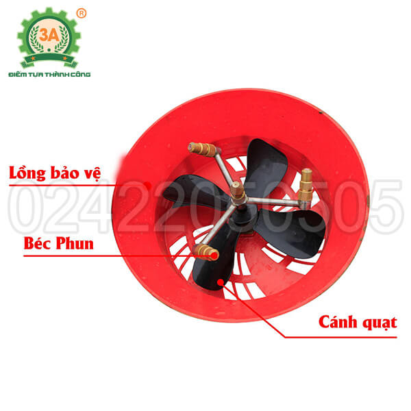 Khi nước đi vào trong bơm cao áp, với áp suất cao và đường kính 4 béc phun bé tạo ra các tia phun bắn vào 4 cánh quạt tạo ra các hạt nước li ti tăng thêm diện tích tưới và giảm áp lực nước khi bắn trực tiếp vào cây trồng. Do đó, chủ các nhà vườn, trang trại hoàn toàn yên tâm sử dụng máy phun sương tưới cây 3A1,5Kw mà không lo làm dập nát cây trồng đặc biệt với các cây thân mềm, cây vườn ươm, các loại hoa,…