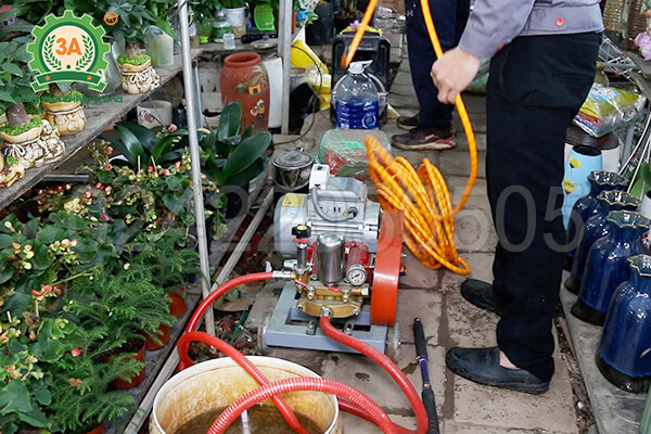 Máy tưới cây 3A sử dụng động cơ 1,5kw với tốc độ động cơ 2900 vòng/ phút và tốc độ trục máy bơm tăng áp 960 vòng/ phút, cho áp lực phun tối đa 2-3,5MPa, giúp tạo áp lực phun khỏe với tầm xa lên đến 6 mét và cao 5 mét. Người vận hành chỉ cần thao tác đơn giản di chuyển cần phun xịt tới các khu vực cần tưới. Nhờ đó, máy giúp phun sương dễ dàng cung cấp lượng nước cần thiết cho cây trồng trên diện tích rộng ngay cả những cây trồng có kích thước cao mà không phải tốn quá nhiều công sức và thời gian.