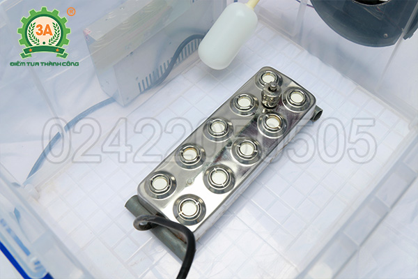| 3 | Bộ vỉ phun sương | – Bộ vỉ phun loại A làm bằng chất liệu inox 304. – Phao cảnh báo mực nước trên vỉ là phao inox. – Vỉ phun sương mẫu inox có nhiều loại: có loại tạo ra 6kg sương/h; có loại tạo ra 8kg sương/h. Mã vỉ phun 10 mắt của hãng 3A được chọn là loại tạo ra 8kg sương/giờ cho lượng sương nhiều hơn các loại vỉ khác. → Hiện 3A đang sử dụng loại vỉ phun tốt nhất trên thị trường.