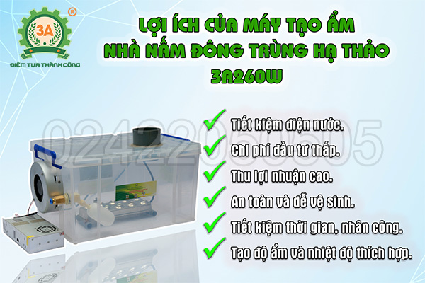 Với những lợi ích vô cùng tuyệt vời như vậy, chắc chắn thiết bị tạo ẩm nhà nấm đông trùng hạ thảo 3A260W sẽ làm hài lòng khách hàng từ những điều nhỏ nhất. Hãy liên hệ ngay với 3A để được tư vấn chi tiết và cụ thể về thiết bị này.