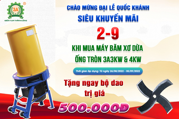 1.2 Máy băm xơ dừa ống tròn 3A (3Kw & 4Kw):
