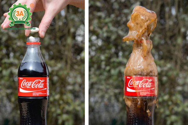 Nếu như những cách trên chưa hiệu quả, bạn có thể múc hết nước ứ đọng ra trước, rồi đổ 1 chai Coca Cola và thả 1 thanh Mentos xuống ống cống. Phản ứng hóa học giữa 2 hợp chất này sẽ tạo bọt và lực tác động mạnh, phá vỡ cấu trúc của của cặn bẩn bám dính chắc chắn trên thành ống để khơi thông đường thoát nước.